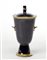Urna di disegno neoclassico in porcellana smaltata in blu cobalto e profilata in oro zecchino. Germania, anni '20. Marcata e numerata sotto la base. (h cm 34)
