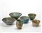 Gruppo di cinque ciotole e una brocca in ceramica smaltata con colature nei toni del verde, ocra, blu e bianco. Italia, anni '30. (misure varie) (lievi difetti)