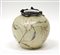 Porcelain vase with a matt and slightly iridescent satin surface with Art Nouveau vegetable decorations, silver rimmed frame. Germany, early 20th century. Marked with graphic symbol of the manufacture and signed in red with the monogram "FS" with a crown. (h 20 cm.)