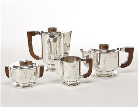 Ricci & C. Spa Servizio da té e caffé in argento e legno composto da una...