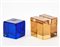 Lotto di due fermacarte in vetro massello arancio e blu. Firmati a punta e datati sotto la base rispettivamente 1981 e 1985. (cm 7x7x7; cm 6x6x6)