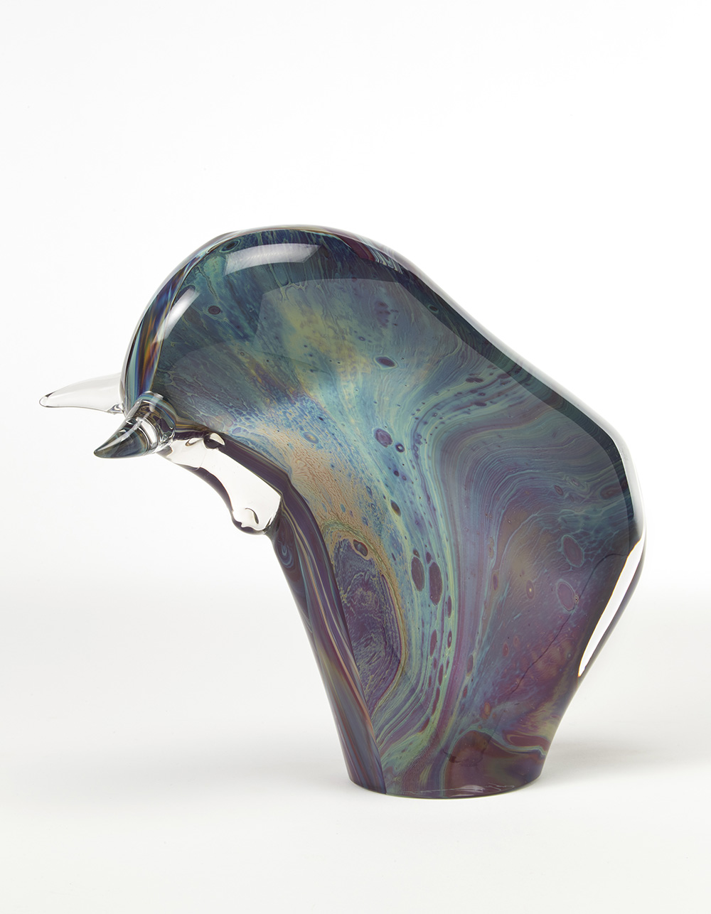 Silvano Signoretto "Toro"Scultura in vetro sommerso trasparente incolore e a...