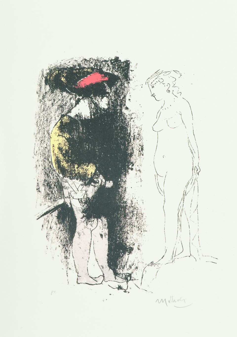 Carlo Mattioli Figure Litografia su carta, cm. 54x39, es. P.A. Firmato in basso a destra.