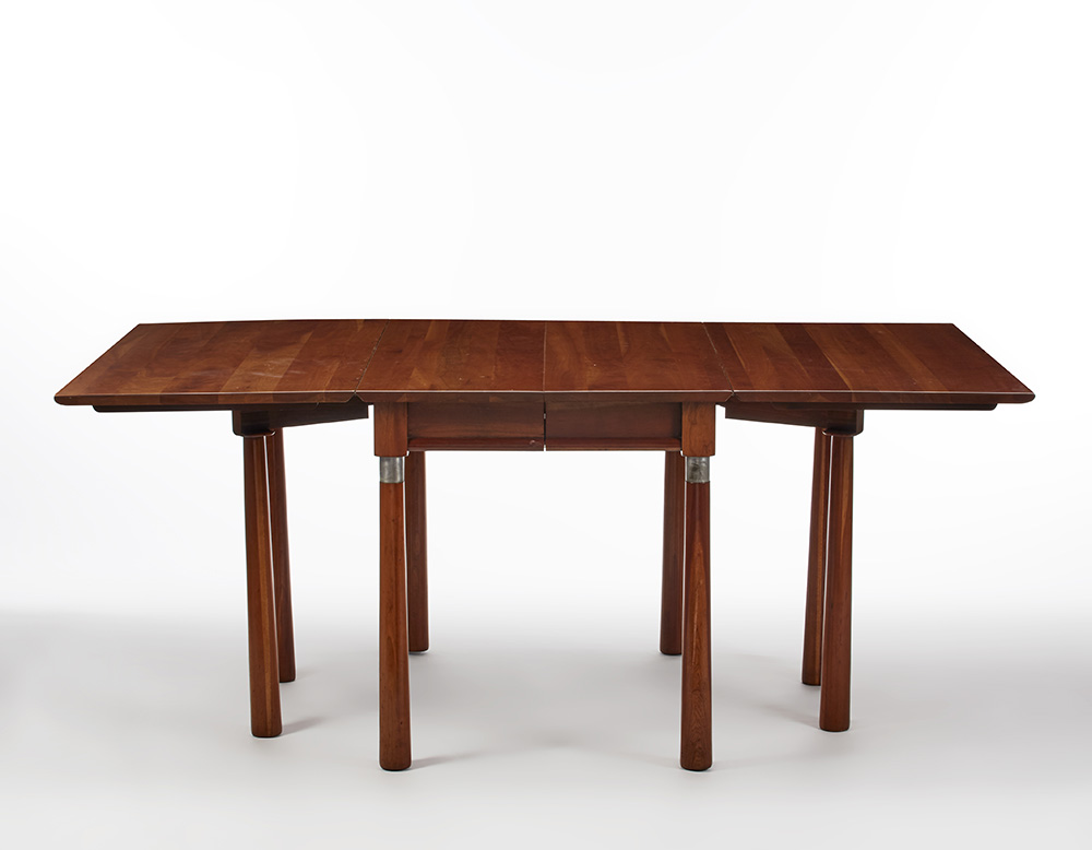 Extendable table with side panels in solid mahogany wood with aluminum parts. Louisville, Kentucky U.S.A. second half 20th century. (200x73x80 cm.) (slight defects)