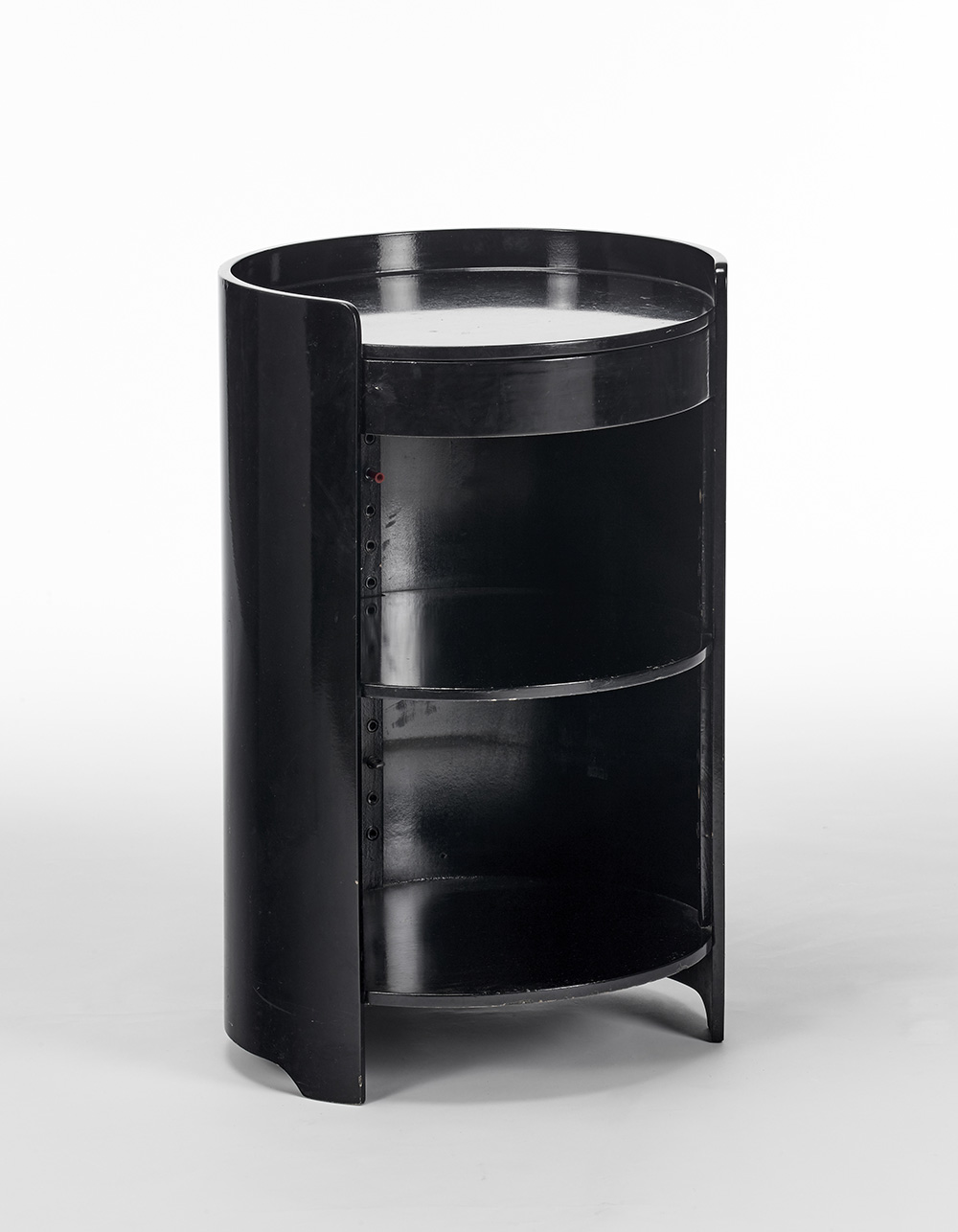 Mobiletto ovale laccato nero modello "Casaccia". Produzione Azucena, Milano, 1962. (cm 42x68x38) (lievi difetti)