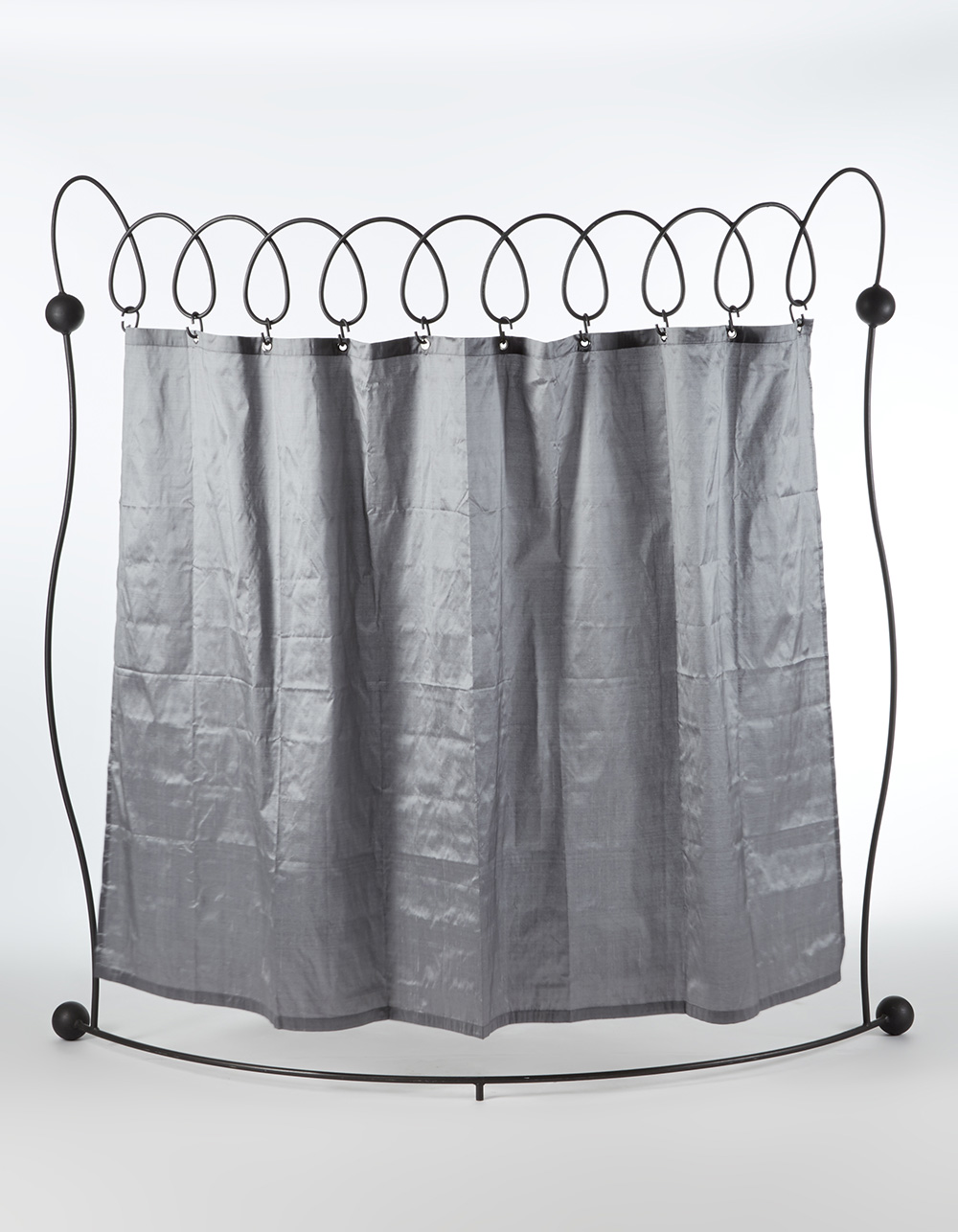 Screen. Italy, 1990. Wrought iron and gray varnished, gray fabric curtain. (175x181.5 cm.)