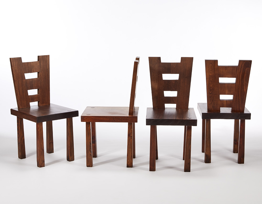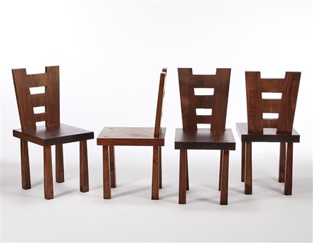 Quattro sedie in legno massello di castagno, abete e palissandro. Italia,...