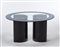 Tavolo alto modello "Fascia Specchiata". Produzione Azucena, Milano, anni '70. Piano ovale in cristallo con fascia perimetrale specchiata, due sostegni a "C" in metallo. (h cm 71; d cm 140) (lievi difetti)