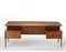 Scrivania da centro a quattro cassetti in legno di mogano impiallacciato e massello. Puntali e maniglie in ottone. Milano, anni '50. (cm 192x78x89,5) (lievi difetti)