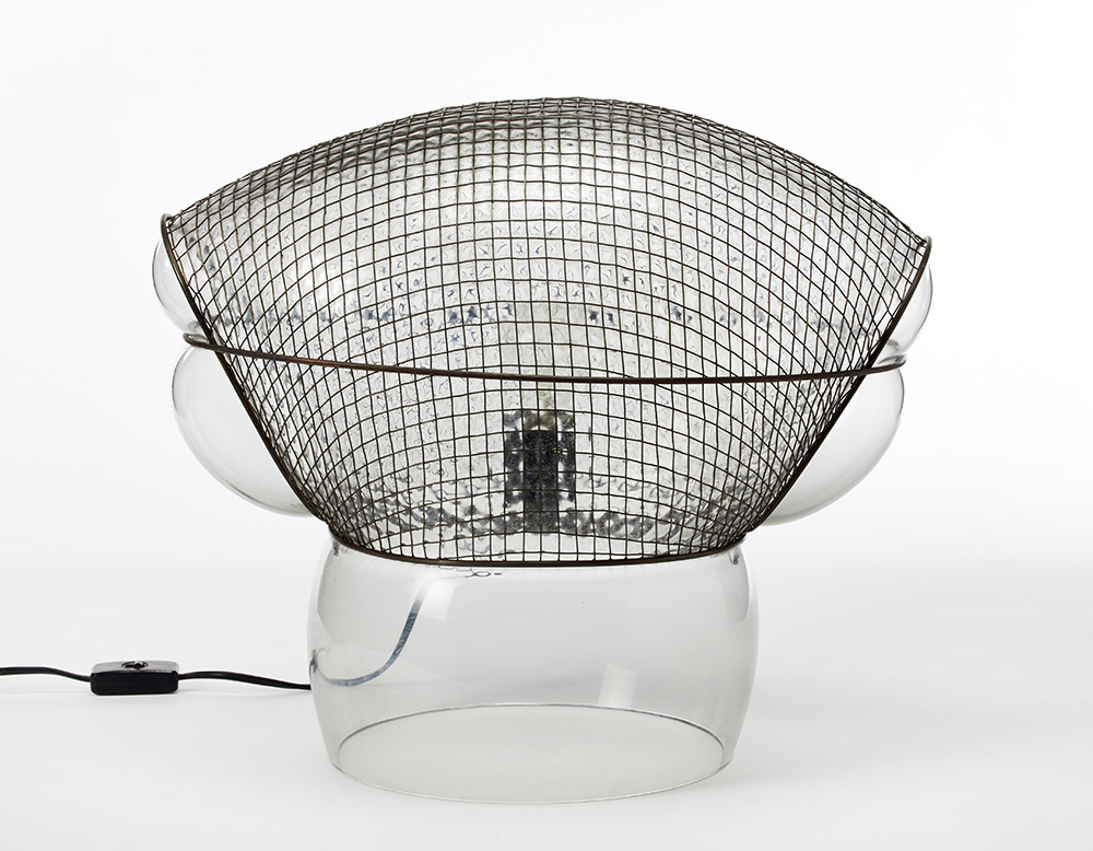 Lampada da tavolo modello "Patroclo". Produzione Artemide, Milano, 1975. Vetro soffiato in un'armatura metallica. (h cm 39)