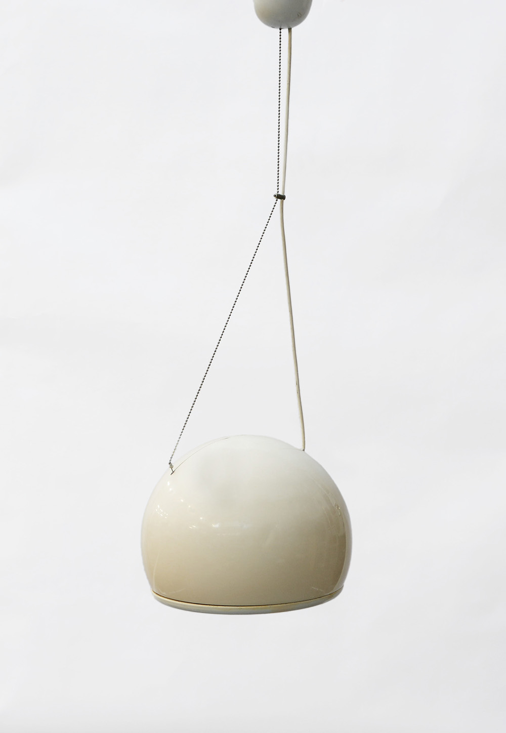 Lampada a sospensione modello "Pallade". Produzione Artemide, Milano, anni '60. Alluminio laccato bianco. (altezza regolabile, d cm 37) (lievi difetti)