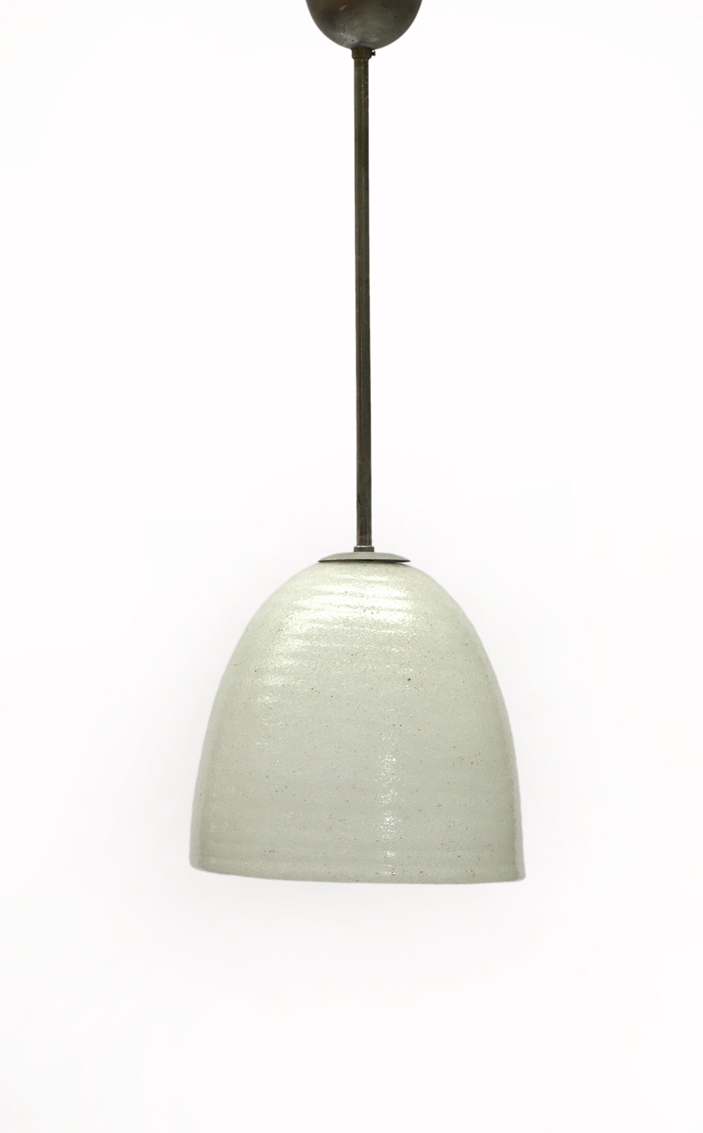 One-light chandelier with pulegoso glass bell. Murano, 1930s. (h 75 cm.) (slight defects)