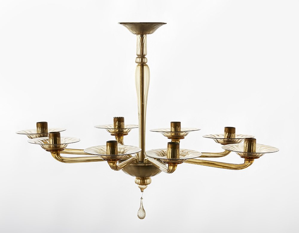 Vittorio Zecchin (Murano 1878 - Murano 1947)Lampadario a otto braccia in...