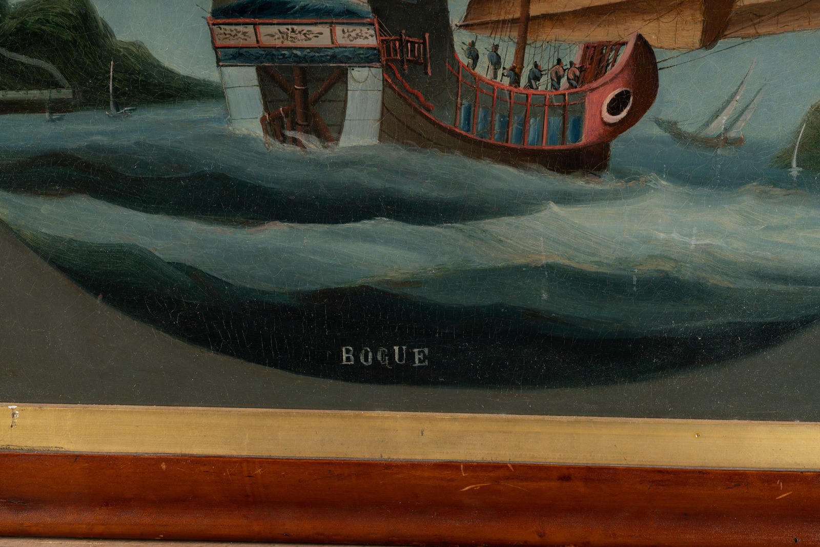 ARTISTA DEL XIX SECOLO Bogue e Canton, velieri cinesi. Olio su carta...
