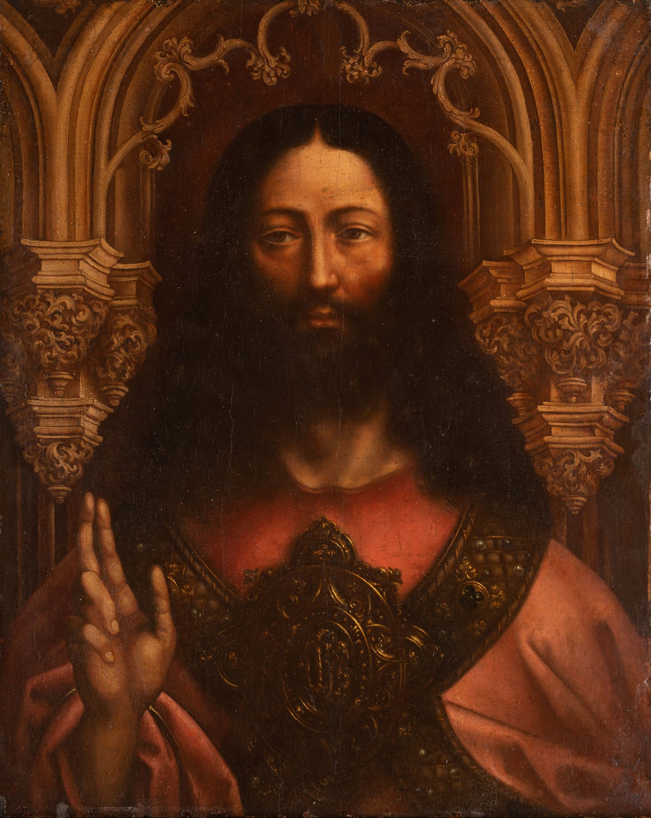Lotto 20 | ARTISTA NORDEUROPEO DEL XIX SECOLO Cristo Salvator Mundi. Olio su tavola. Cm...