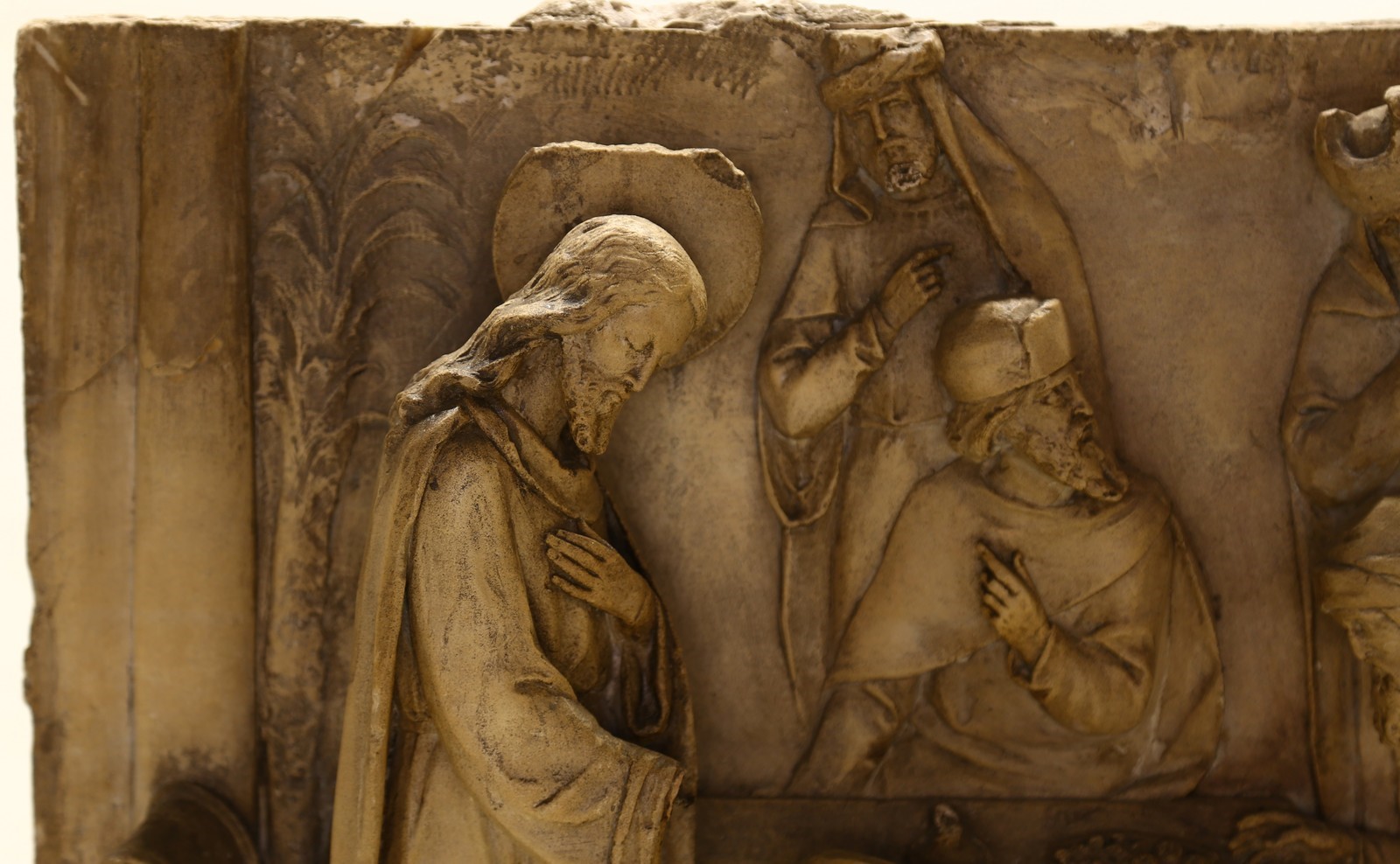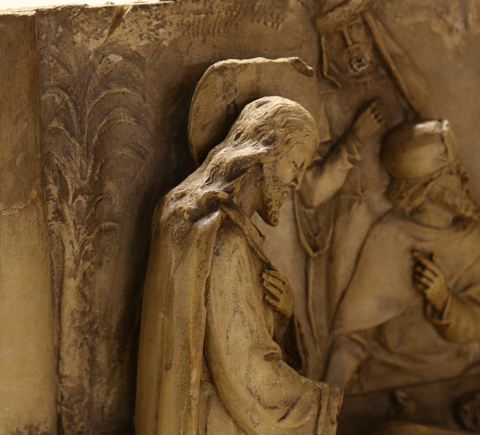MANIFATTURA TOSCANA DEL XIX SECOLO Gesù e Maria Maddalena. pietra di Signa. Cm 58,00 x 52,50 x 14,00. Marmo