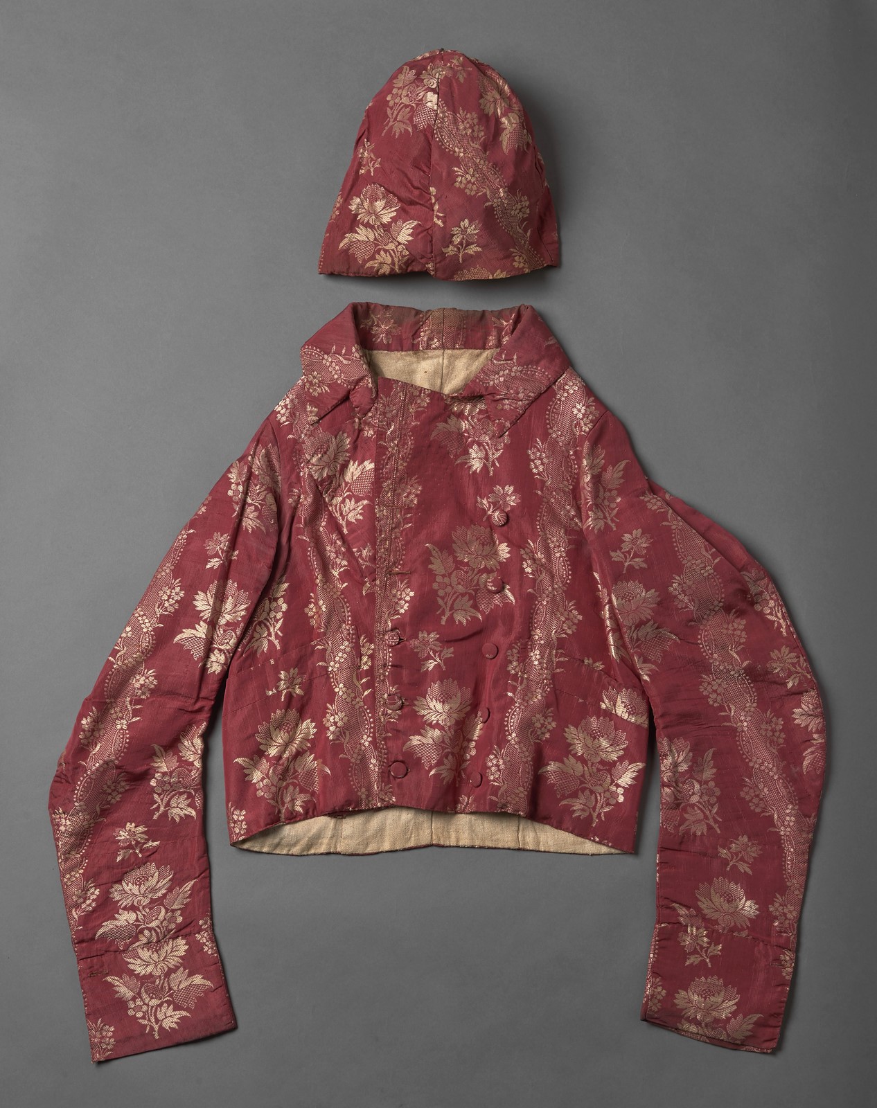 MANIFATTURA VENETA DEL XIX SECOLO Livrea in broccato con cappello. . Cm 41,00...