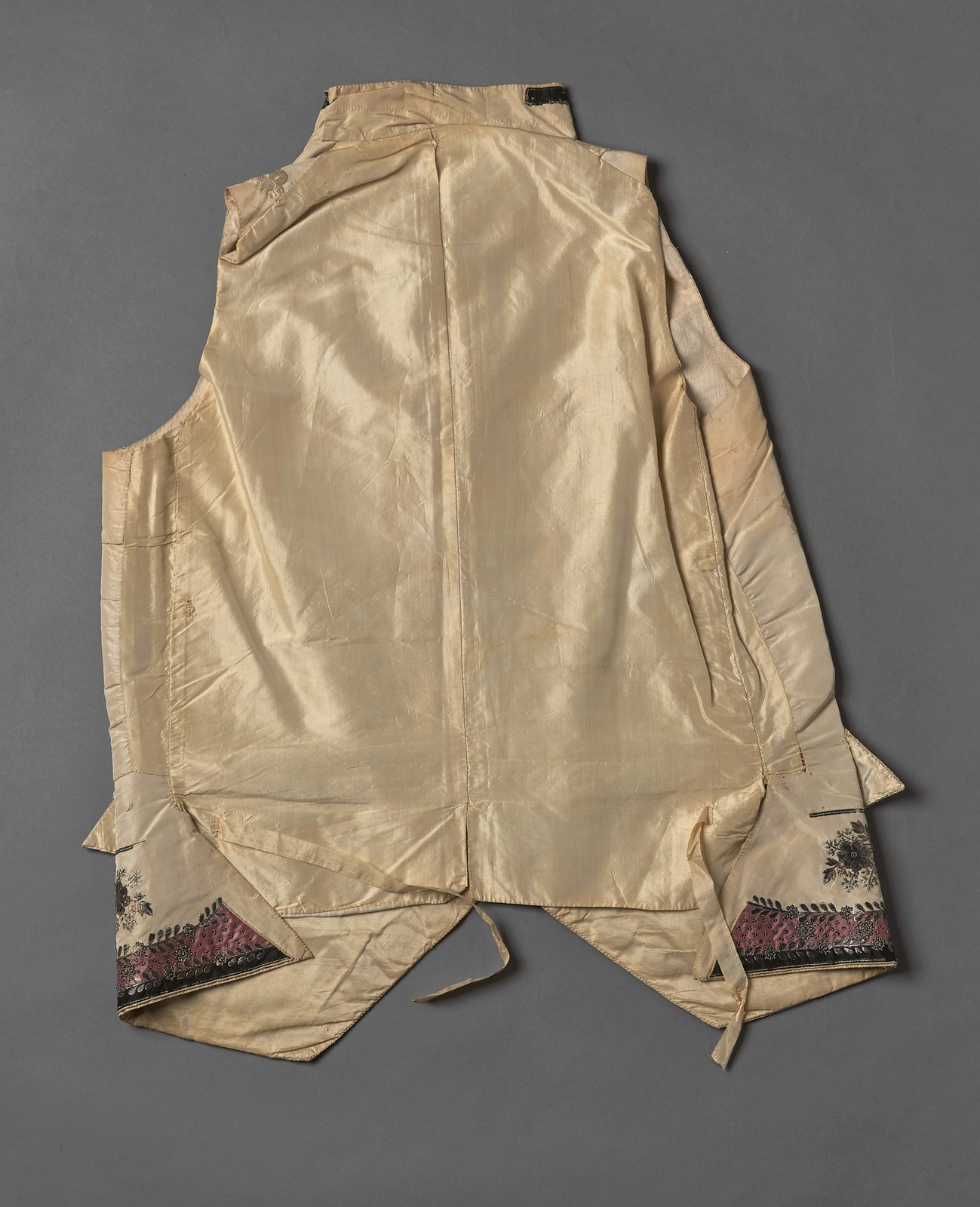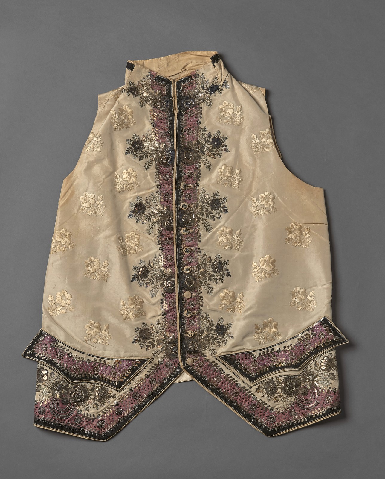 MANIFATTURA VENETA DEL XIX SECOLO Marsina ricamata con inserti in metallo e seta. . . Cm 48,00 x 68,00.