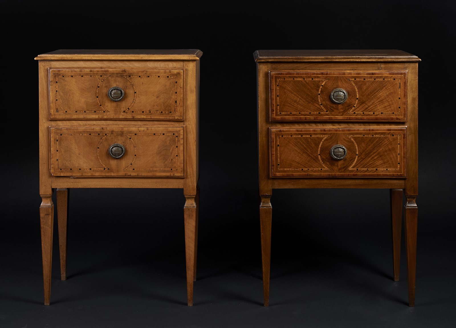 MANIFATTURA LOMBARDA DEL XVIII SECOLO Coppia di comodini Luigi XVI in legno e...