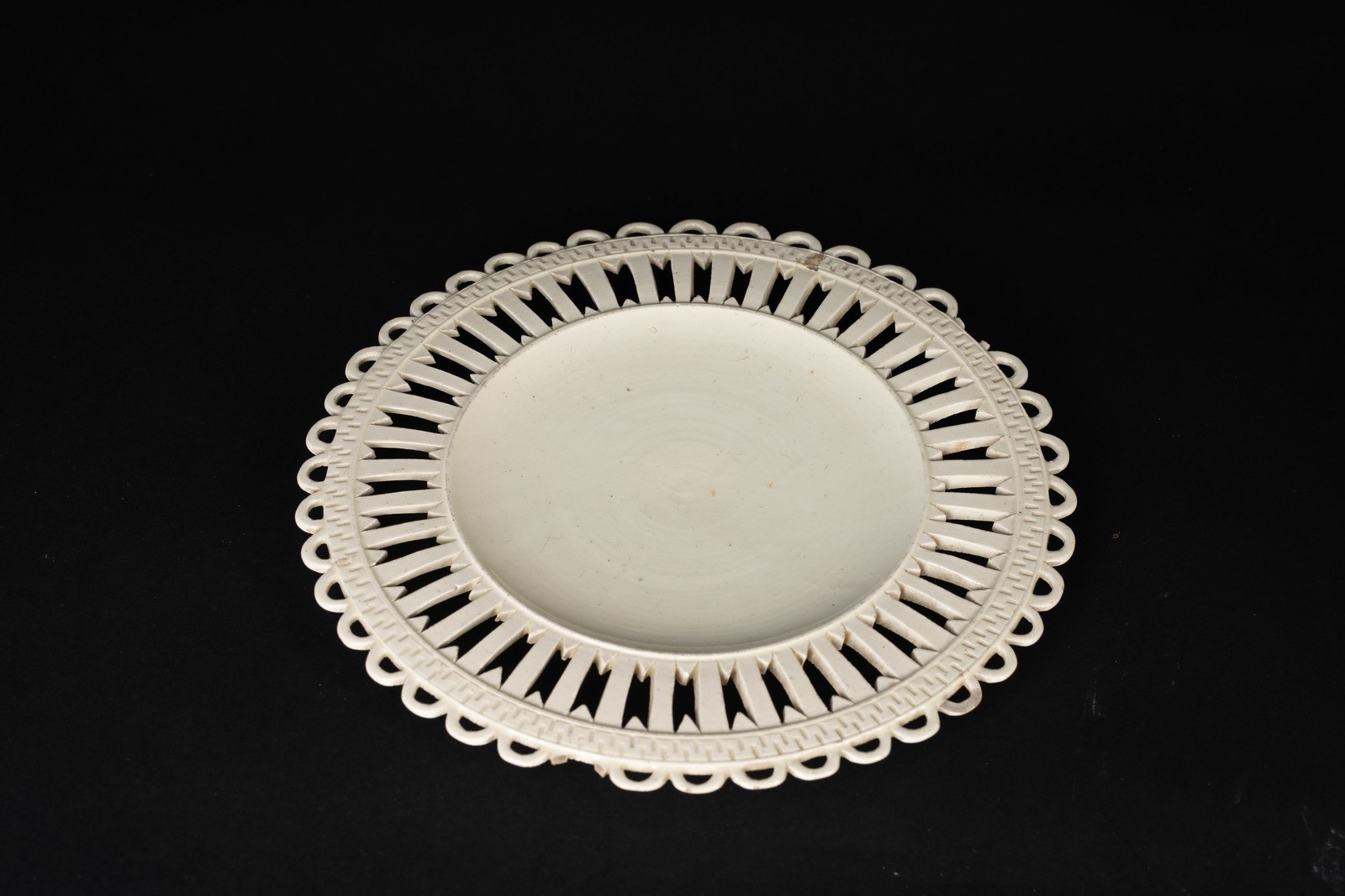 MANIFATTURA VENETA DEL XIX SECOLO Cofanetto in terraglia e piatto. . Cm 24,00. Marchio G. F. Rotture.