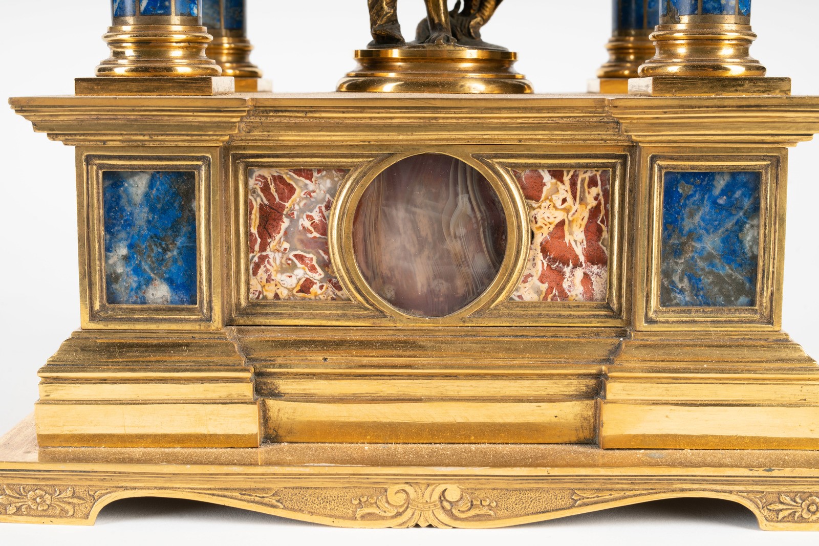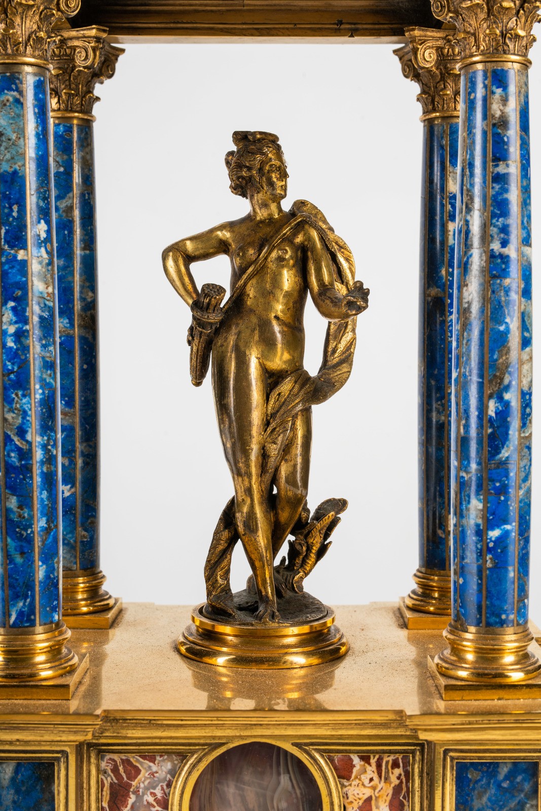 MANIFATTURA ITALIANA DEL XIX SECOLO Tempietto in bronzo dorato, al centro figura di Diana in bronzo dorato del XVII secolo. . Cm 21,00 x 36,00. Decorazioni in lapislazzulo e pietre dure.