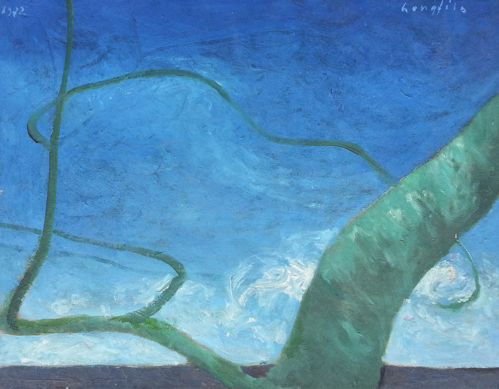 Enrico Longfils (Mantova 1914 - 1992) Roots in blue Olio su tela anno 1972 cm 30x40