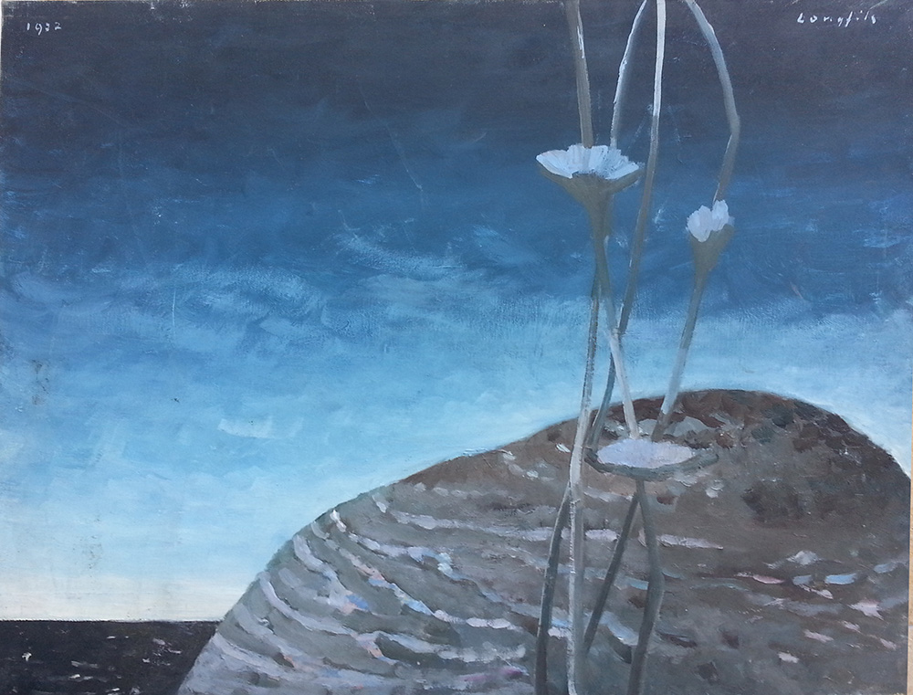 Enrico Longfils (Mantova 1914 - 1992) Flowers in blue Olio su tela anno 1972 cm 50x60