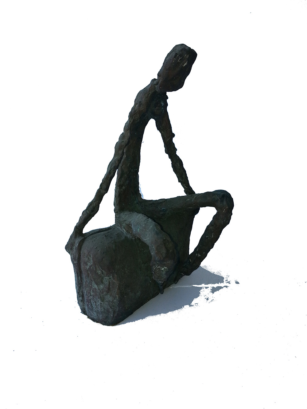 Herry Pierre Rosenthal (Vienna 1922 - Arruda Dos Vinhos 2017) Uomo su valigia Scultura in bronzo cm 38x23x17