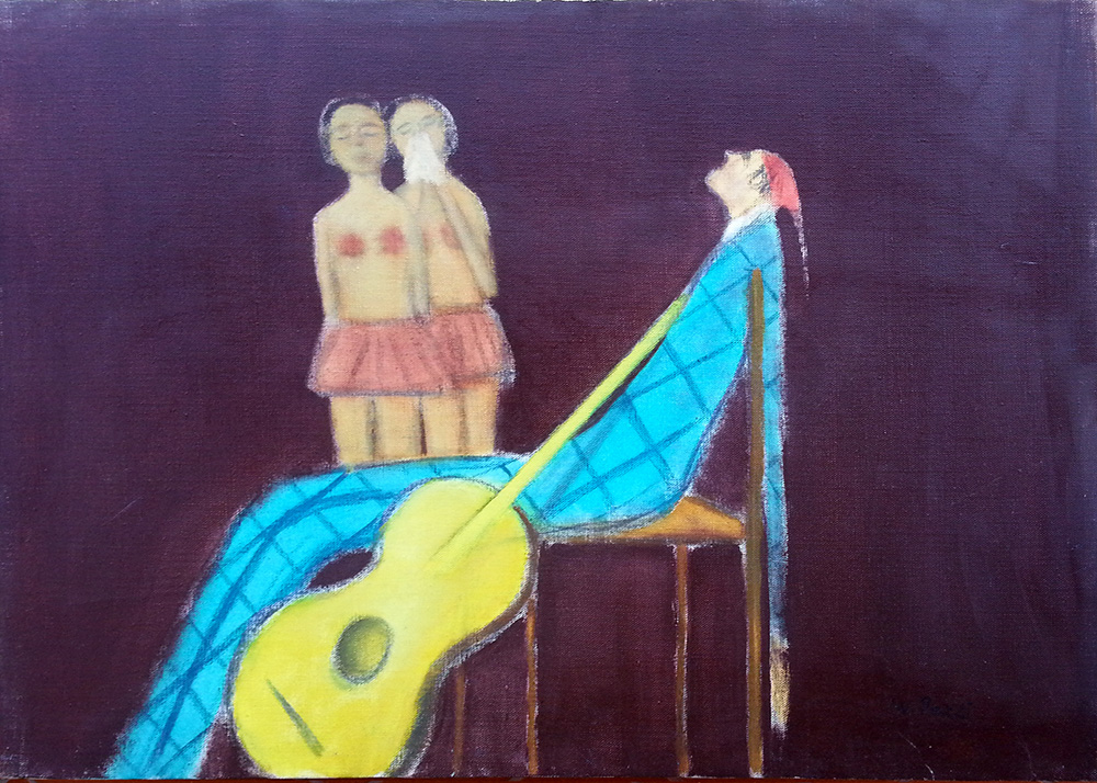 Walter Pozzi (Bergamo 1911 - Milano 1989) Arlecchino stanco Olio su tela cm 60x80