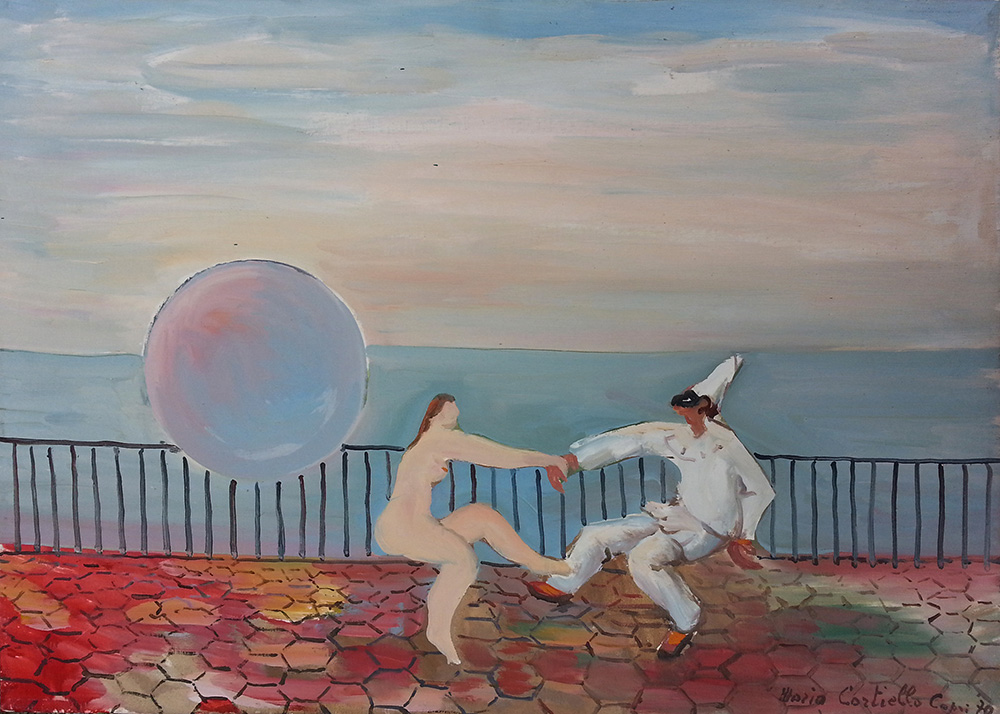 Mario Cortiello (Napoli 1907 - San Sebastiano al Vesuvio 1981) Incontro a Capri Olio su tela anno 1970 cm 50x70