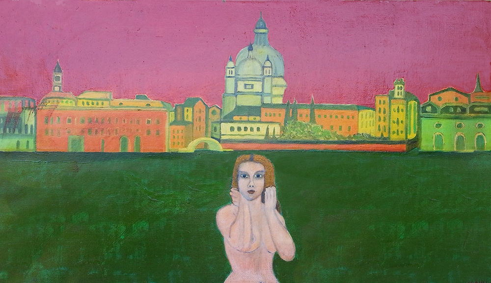 Lotto 114 | Masino Donna con due delfini invisibili Olio su tela cm 50x90
