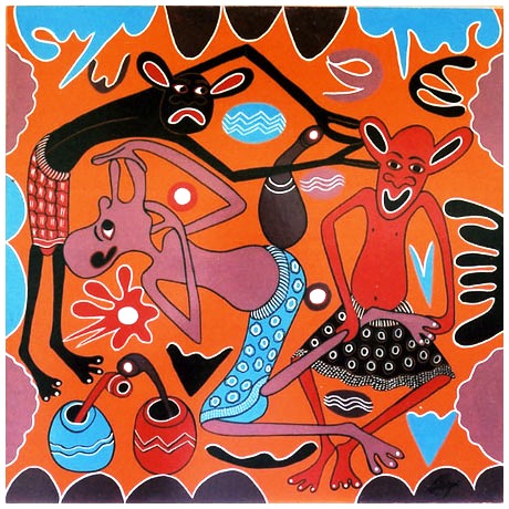GEORGE LILANGA Kikwetu (Tanzania) 1934 – Dar es Salaam (Tanzania) 2005 Usiwe na hasira kaka kwani huyo ndio aliuyo Olio su faesite 61 x 61. Firma in b. a d.; titolo sul verso. Autentica galleria Rosenfend, Bad Kissingen su foto. Pubbl.: “George Lilanga” catalogo mostra a cura di Silvio Guarasci, Saletta Viviani, Pisa, 10 giugno – 30 luglio 2006, p.57. base: 450