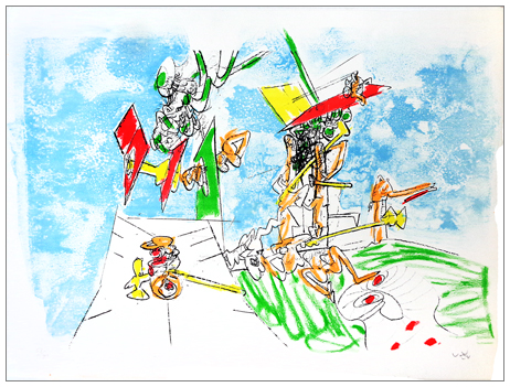 SEBASTIAN MATTA Santiago (Cile) 1911 – Civitavecchia 2002 Senza titolo Litografia a colori es.53/90. Firma + timbro a secco “Graphis Arte, Livorno” in b. a d. (49 x 65 foglio e lito.) base: 100
