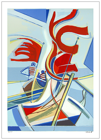 ARMANDO PIZZINATO Maniago 1910 – Venezia 2004 Senza titolo 1987 ca. Serigrafia a colori es.58/100. Firma + timbro a secco in b. a d. (70 x 50 foglio – 61 x 43,5 ser.) Opera corredata di colophon con testo di Ennio Pouchard, Treviso. base: 50
