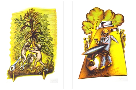 TINO VAGLIERI Trieste 1929 – Rivolta d'Adda 2000 Lotto di 2 opere A) Stanza di Eliodoro Litografia a colori es.2/99. Firma in b. a d., titolo sulla lastra in b. a d. (70 x 50 foglio – 60 x 40 lito.) B) Senza titolo Litografia a colori es.76/99. Firma in b. a d. (70 x 50 foglio – 56 x 40 ca. lito.) base: 50
