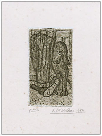 GIUSEPPE VIVIANI Agnano Pisano 1898 – Pisa 1965 Cane nel negozio 1959 Acquaforte su rame es. prova. Firma e data in b. a d. + sulla lastra in b. al c. “959 By G. Viviani” (20 x 14 foglio – 7 x 4,1 inc.) Tiratura: Primo stato 1 es. su carta Giappone bianca; secondo stato 1 es. su carta Giappone; terzo stato 100 es. numerati e firmati su carta Giappone bianca + 20 es. firmati fuori commercio numerati con le lettere dell’alfabeto su carta Giappone bianca + 6 es. prova su carte diverse. Lastra biffata. Pubbl.: “Giuseppe Viviani Catalogo Generale” a cura di Silvio Guarasci, Editore Saletta d’Arte Viviani s.a.s., Stampatore Pacini S.p.a., Pisa, ottobre 2015, p.93. base: 200
