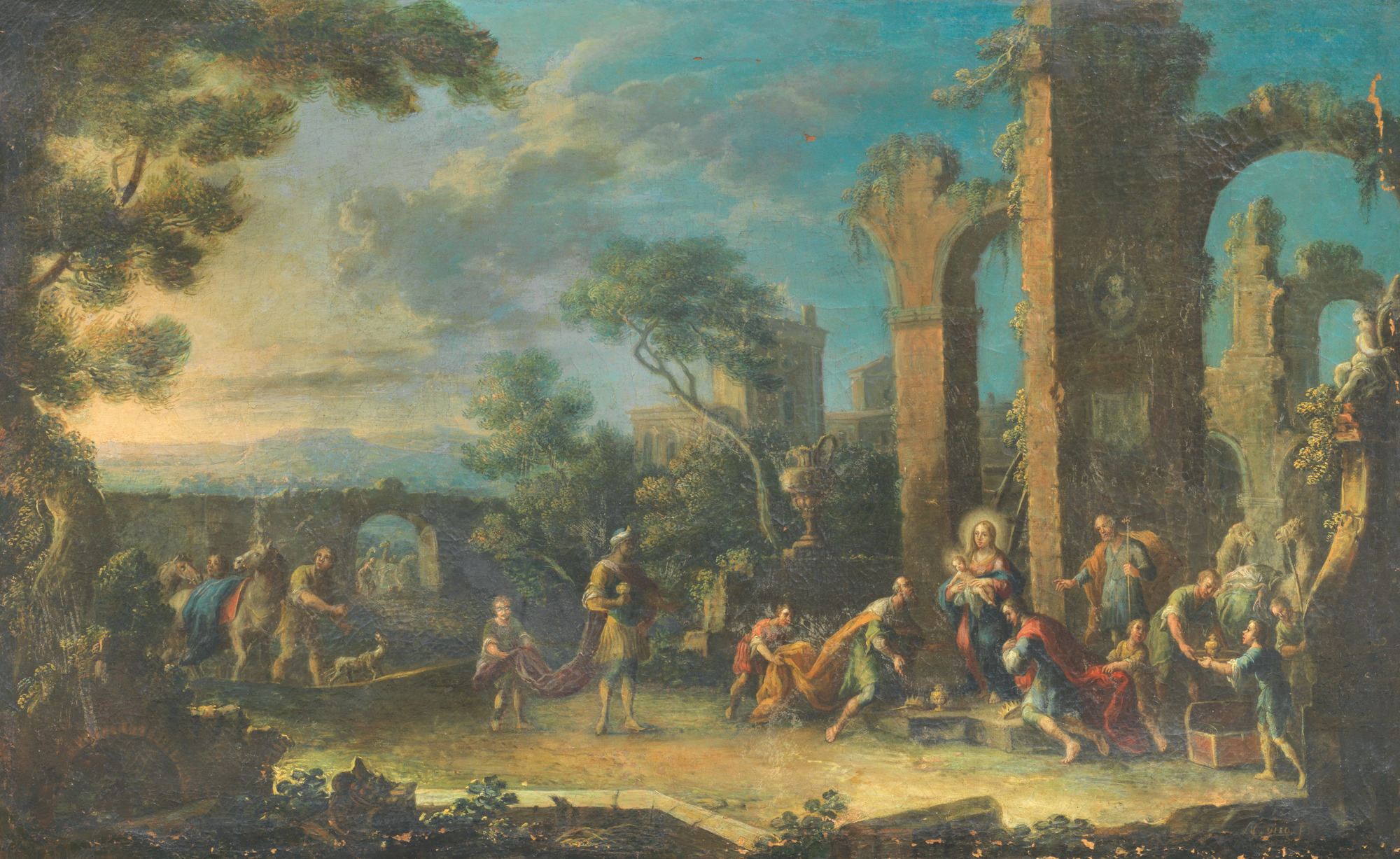 Nicola Viso ADORAZIONE DEI MAGI Olio su tela, cm 63x100 Firmato nella parte inferiore destra: N VISO F
