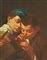 Domenico Maggiotto COPPIA DI BAMBINI CHE ARMEGGIANO CON UNA TRAPPOLA Olio su tela, cm 58x45
