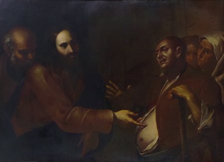Scuola emiliana del XVII secolo GESU’ E L’IDROPICO Olio su tela, cm 95x132...