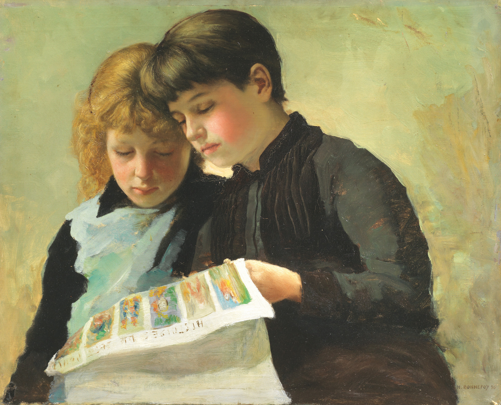 Henri Bonnefoy FANCIULLI IN LETTURA Olio su tela, cm 55x66 Firmato