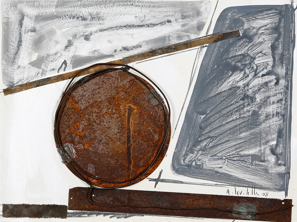 ANTONIO IEVOLELLA 1952 Senza titolo (appunti di memoria) , 2008 Tecnica mista, acciaio corten e garza su carta cotone applicata su tavola, cm. 57 x 76,5 Firmato e datato in basso a destra Autentica dell’artista su fotografia Prov. Collezione Privata PUBBLICAZIONI: “Antonio Ievolella sculture”, catalogo mostra a cura del Comune di Padova (25 ottobre 2014 - 11 gennaio 2015) Edizioni Skira, Ginevra-Milano, 2014, p. 140 n. 232