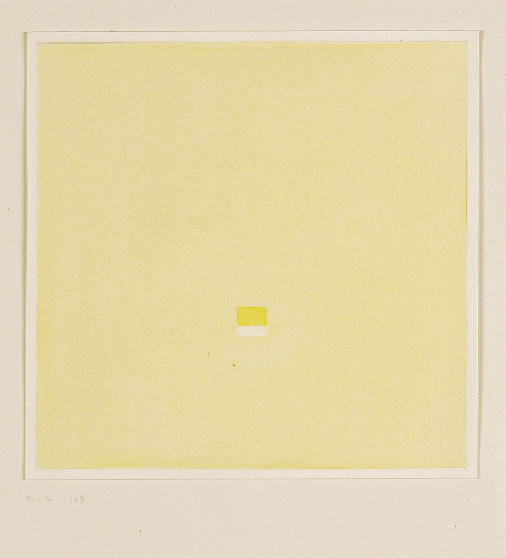 ANTONIO CALDERARA 1903 - 1978 Quadrato nel quadrato, 1967 Acquerello su cartoncino, cm. 18,5 x 18,5 Siglato e firmato in basso a sinistra Etichetta Galleria Milano, Milano sul retro Certificato di Provenienza Galleria Milano, Milano Prov. Collezione Privata PUBBLICAZIONI: “Antonio Calderara. L’ opera astratta”, catalogo mostra Museo del Paesaggio (11 novembre 2007 - 10 febbraio 2008), Verbania, Silvana Editori, p. 60 n. 26