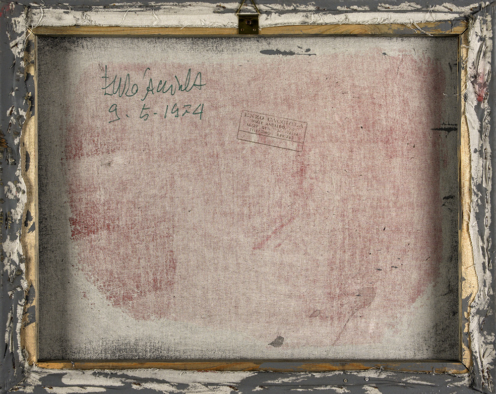ENZO CACCIOLA 1945 9-5-1974, 1974 Cemento e asbesto su tela, cm. 40 x 50 Firmato e datato sul retro Timbro dell’artista sul retro Autentica dell’artista su fotografia Prov. Collezione Privata