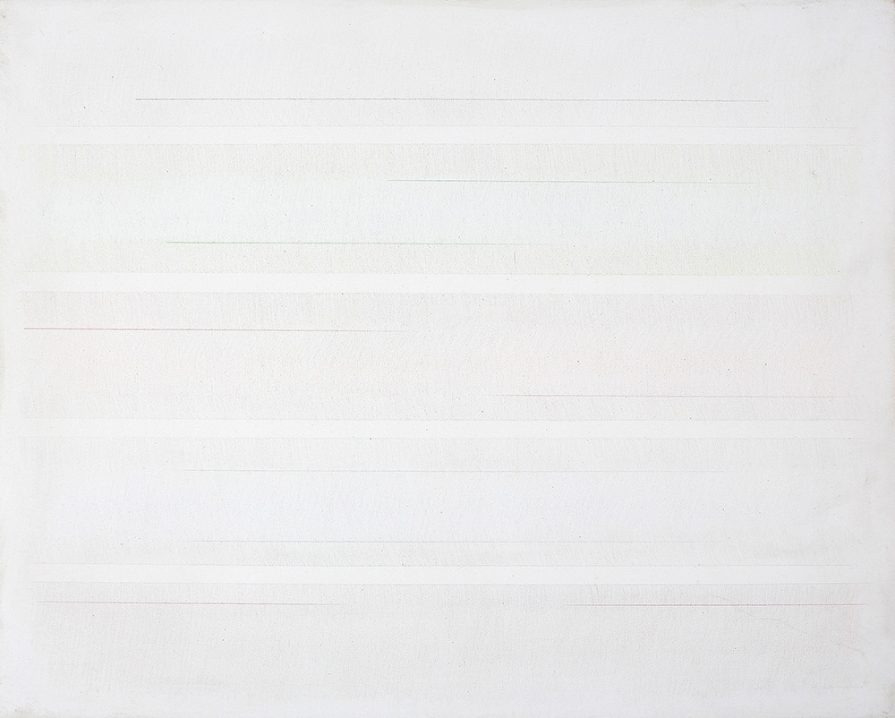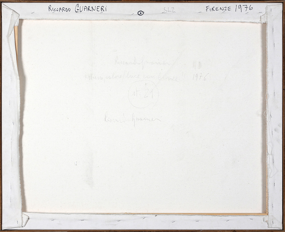 RICCARDO GUARNERI 1933 Strisce, colore/luce con linee, 1976 Tecnica mista su tela, cm. 100 x 80 Firmato e datato sul retro Autentica dell’artista su fotografia Prov. Collezione Privata
