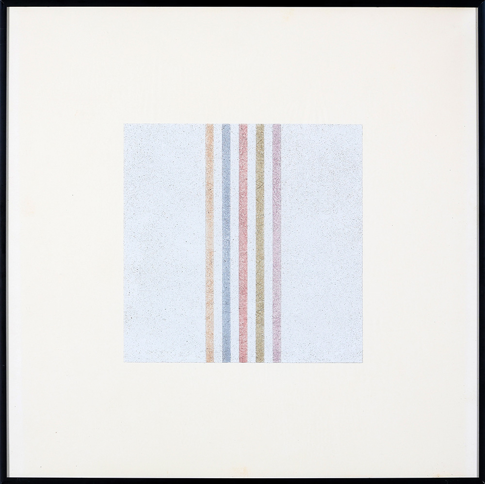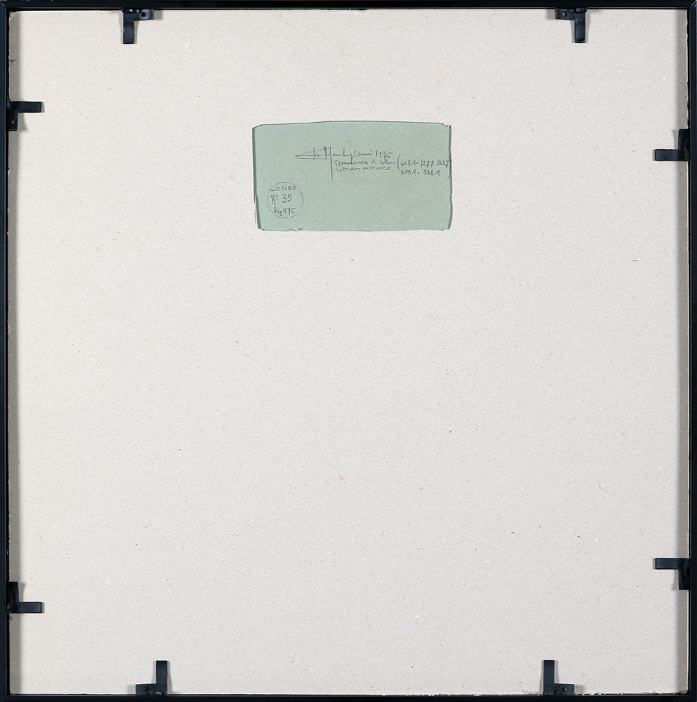 ELIO MARCHEGIANI 1929 Senza titolo, 1975 Grammature di colore su intonaco applicato su carta cm. 50 x 50 (interno cm. 24,5 x 24,5) Firmato e datato sul retro Prov. Collezione Privata