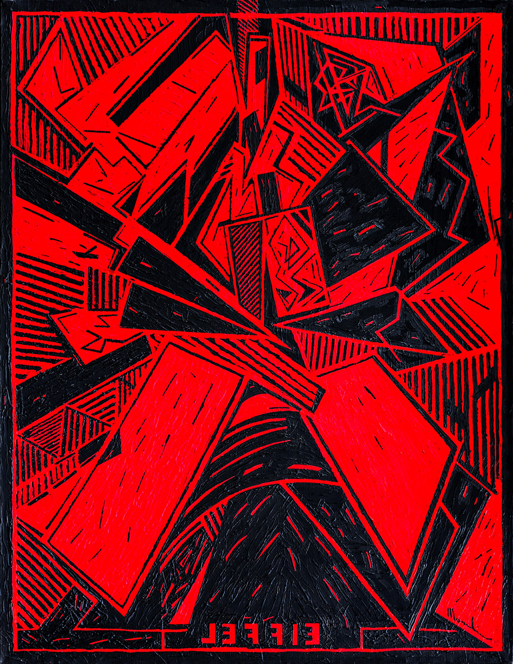 ALDO MONDINO 1938 - 2005 Eiffel, 1979 Acrilico su tela, cm. 146 x 115 Firmato e datato sul retro Etichetta Studio Morra, Napoli sul retro Certificato di Provenienza Galleria Pananti, Firenze Prov. Collezione Privata