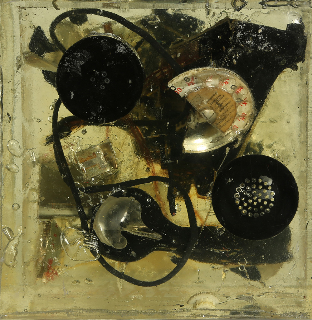 FERNANDEZ ARMAN 1928 - 2005 Colère, 1972 Accumulazione, telefono in cubo di resina, cm. 25 x 25 x 25 Firmato e datato sul lato Certificato di Autenticità a cura di Archives Denyse Durand-Ruel, Ruel-Malmaison Prov. Collezione Privata