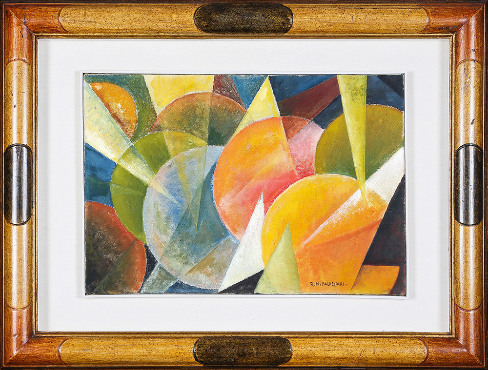ROBERTO MARCELLO BALDESSARRI 1894 - 1965 Simultaneità di forme 7 (Dinamismo), 1915 ca. Olio su tela, cm. 37 x 54 Firmato in basso a destra Certificato di Archiviazione a cura dell’Archivio Unico per il catalogo delle opere futuriste di R. M. Baldessari, Rovereto Prov. Collezione Privata