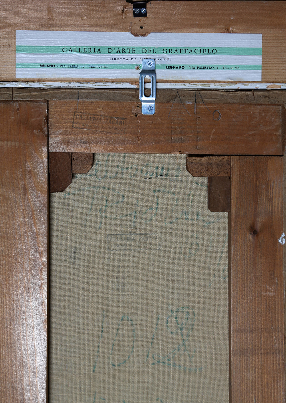 HANS RICHTER 1888 - 1976 Senza titolo, 1961-62 Olio su tela, cm. 130 x 28,5 Firmato e datato in basso a destra Etichetta Galleria d’Arte del Grattacielo, sul retro Timbro Galleria Pagani, Milano sul retro Prov. Collezione Privata