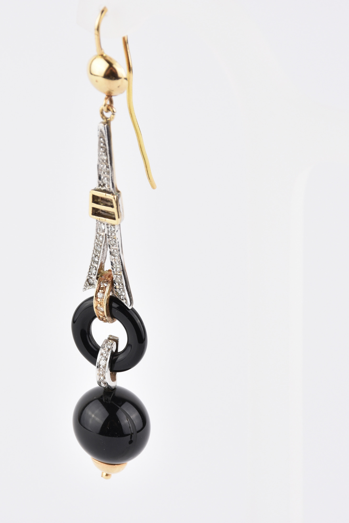 PAIO DI ORECCHINI PENDENTI IN ORO A BASSO TITOLO, ONICE E DIAMANTI realizzati...